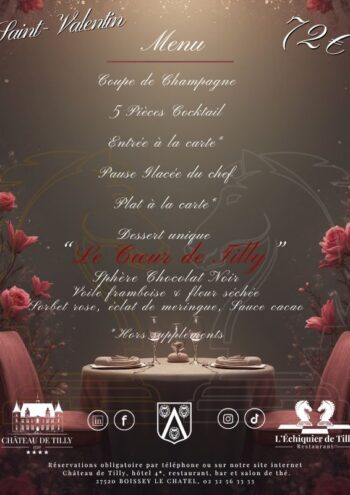 Prochainement Soirée Saint Valentin au Château de Tilly Un groupe de musique viendra jouer en début de soirée (19-20h), suivi du début de soirée à ... Boissey-le-Châtel Saint Valentin au Château de Tilly samedi 14/02